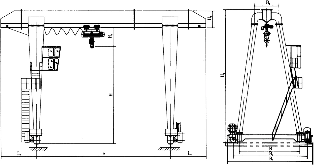 MH Model Electric Hoist Girder Gantry Crane is used together with CD MD Model electrichoists.It is a track travelling small and medium-sized crane.Its proper Lifting weight is 3 to 20tons.Proper span is 12 to 30 meters,its proper working temperature is-20℃ to 40℃.