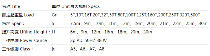QD型雙梁橋式起重機(jī)技術(shù)規(guī)格表: