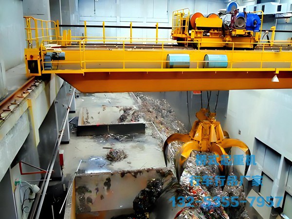 小車上安裝抓斗(代替吊鉤),用于抓取散料(如礦石、煤炭、糧食),廣泛應(yīng)用于港口、礦山、垃圾處理場。